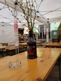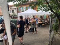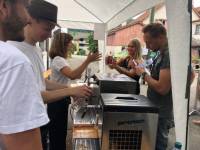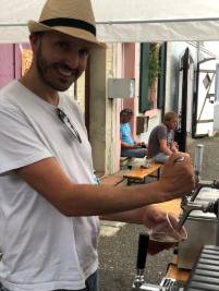 Es herrschte eine prima Stimmung am Jubiläums-Regio-Brauereitag! Neben unseren zwei klassischen Bieren (Amber und Helles) wagten wir uns dieses Jahr an eine deftiges Whisky-Coffee-Stout. Zur Überraschung vieler war der Geschmack zahmer als es seine Farbe vermuten liess ;-) Zur Stärkung wurde lokaler Fleischkäse mit Kartoffelsalat aufgetischt.